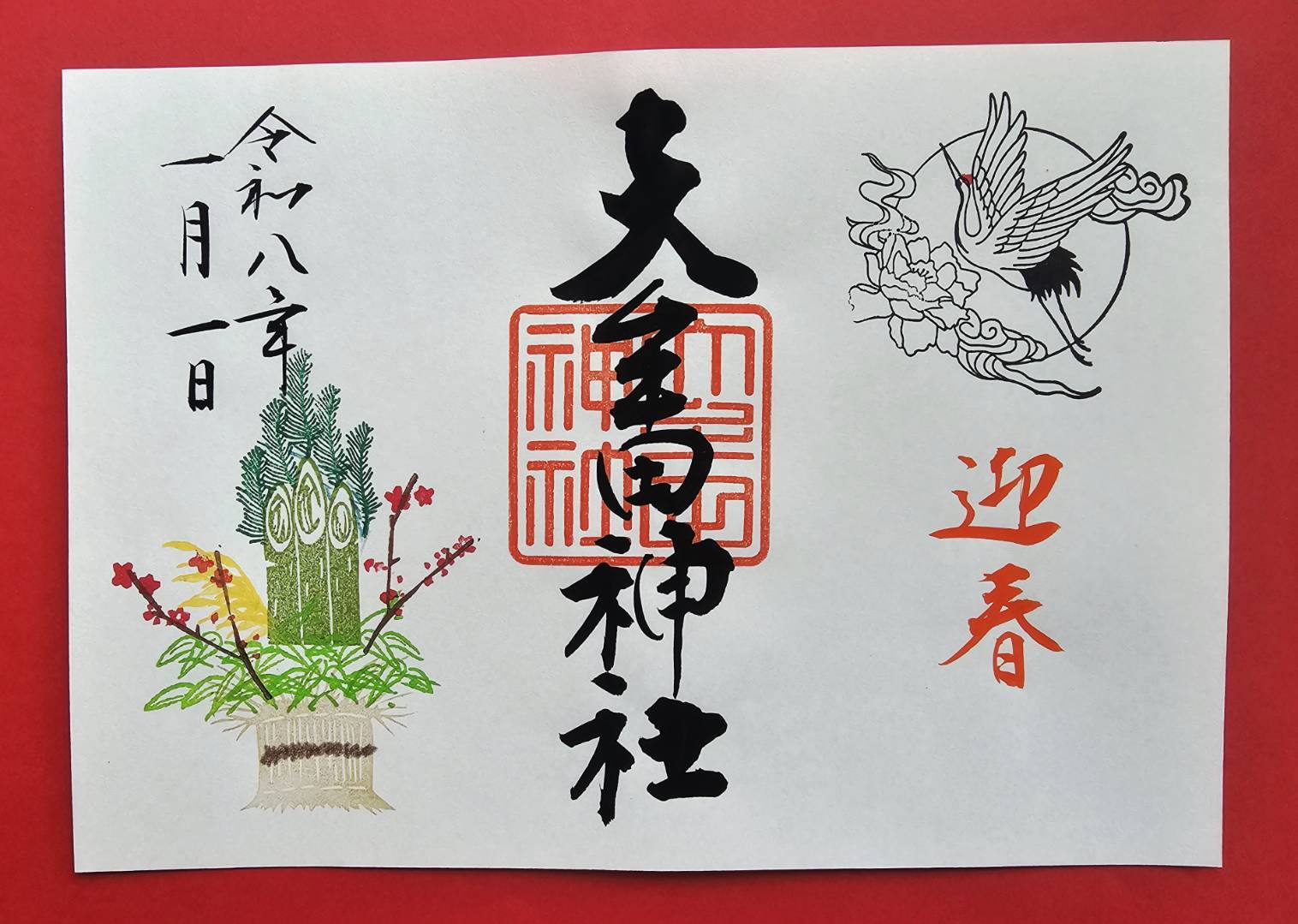 めでたい門松と鶴、穏やかな一年を願ってお書きしました。