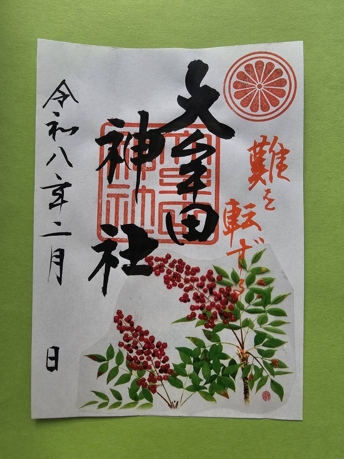 境内にもたくさん実をつけていますが、難を転じて福となす、縁起のいい木です。